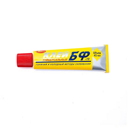 С помощью клея БФ-19 можно склеить металлы, керамику, стекло, дерево и ткань горячим методом. Холодный способ подходит для монтажного склеивания картона, бумаги, резины, пластиков, кожи и тканей.
